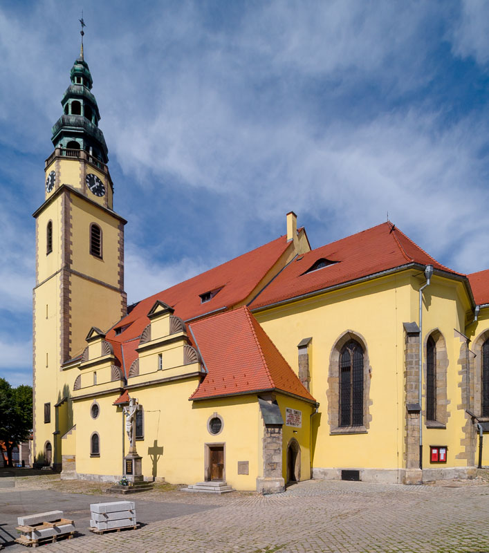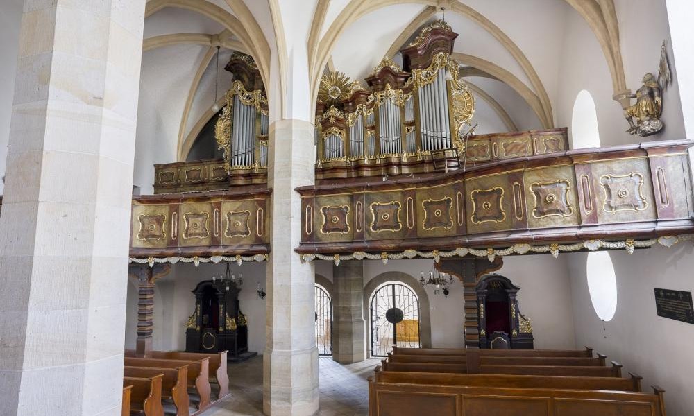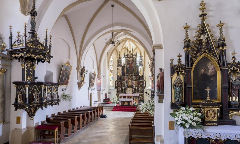 Kościół istniejący od XIII w. Skomplikowana sylweta kościoła - od wschodu średniowieczna, od zachodu dwudziestowieczna nawiązuje do renesansu śląskiego, jest wynikiem licznych przebudowań od XIII do XX w. Obecny kościół halowy, z wieżą od południa, od zachodu dwuszczytowa elewacja frontowa z neorenesansowymi portalami z pocz. XX w. We wnętrzu godne uwagi: rzeźba Madonny z dzieciątkiem (XV w.), kamienna chrzcielnica (1577), barokowe rzeźby i krata, neogotycki ołtarz i ambona.
