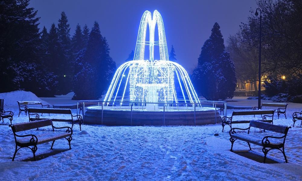 W okresie jesienno-zimowym ze względu na obniżoną temperaturę powietrza, fontanna jest wyłączona. W miejscu dotąd spływającej wody, zostaje usytuowana przepiękna iluminacja świetlna, która swoim wyglądem przypomina czar wyrzucanej przez fontannę wody.