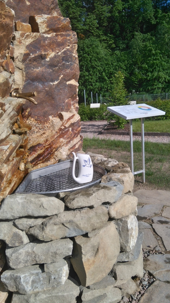 Z sezonowej pijalni wody mineralnej w Ogrodach Biblijnych wypływa szczawa wodorowęglanowo-(HCO3) wapniowo (Ca) magnezowa (Mg). Mineralizacja wody wynosi 1405mg/l, a zasoby eksploatacyjne źródła to 24 000 l/dobę.