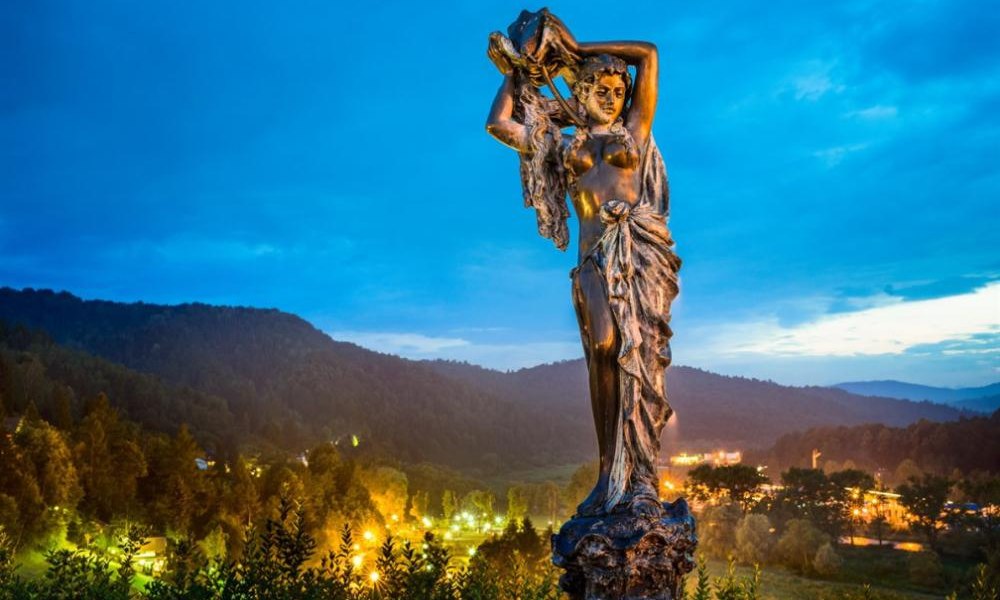 Ogród Afrodyty – jego patronką jest grecka bogini miłości, Afrodyta, która symbolicznie ze swej amfory podlewa rajskie jabłonie, sadzone tutaj przez pary nowożeńców (zarówno polskich jak i zagranicznych). Muszyńskie drzewka miłości są symbolem dobrobytu, szczęścia i rozkwitającej miłości młodych. Z roku na rok drzewek przybywa, zapewne za jakiś czas las Afrodyty będzie dawał cień i schronienie przed upałem kolejnym pokoleniom. Te ze specjalnych kłódek dowiedzą się, kto był fundatorem drzewek.