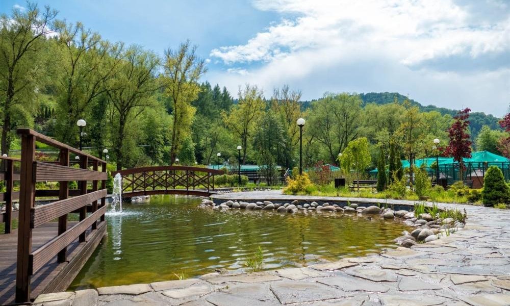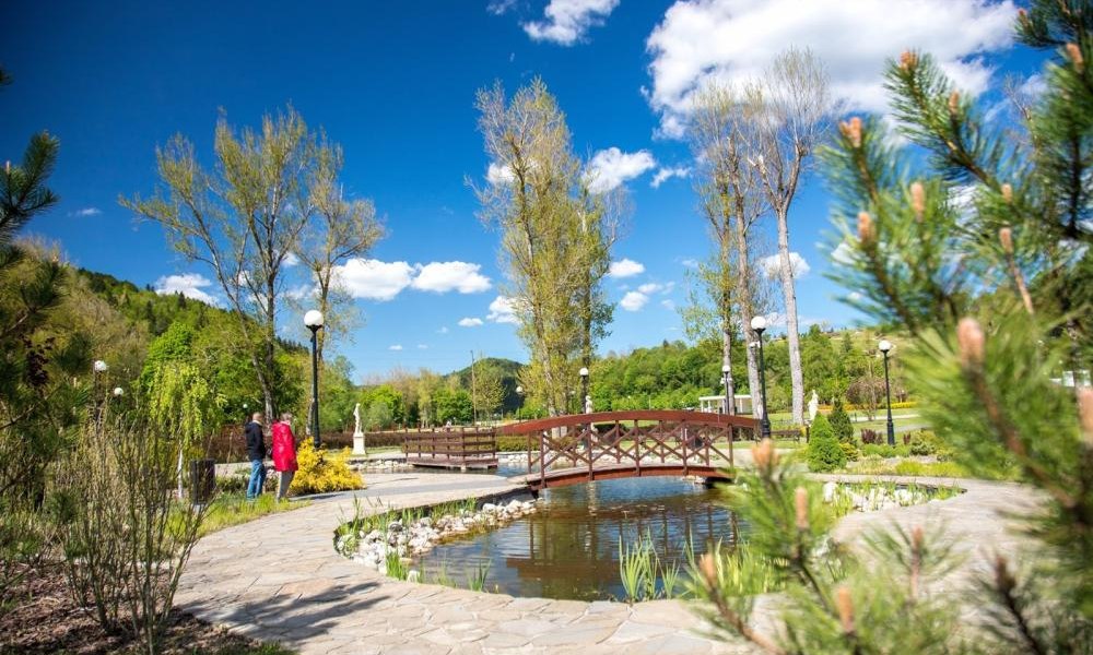Konstrukcja ogrodów składa się z przestrzeni otwartych, dzięki czemu ich spora część w ciągu dnia jest dobrze nasłoneczniona, z czego chętnie korzystają turyści, zażywając kąpieli słonecznych. Helioterapia – metoda leczenia promieniami słonecznymi została udowodniona na początku XX w., a jej odkrywca, duński lekarz Niels Ryberg Finsen, otrzymał nagrodę Nobla. Za pomocą promieni słonecznych możliwe jest łagodzenie dolegliwości skórnych. Ponadto słońce doskonale działa na układ nerwowy. Dzięki słońcu czujemy przypływ energii, jesteśmy bardziej szczęśliwi i zadowoleni, a także w naszym organizmie wytwarza się witamina D3, niezbędna do jego prawidłowego funkcjonowania. Dlatego też w pogodne dni zaleca się spacery lub relaks na świeżym powietrzu. W Muszynie helioterapię wykorzystywano już w pierwszej połowie XX w. Dla osób, które przed słońcem wolałyby się schować, idealne będą ławki wypoczynkowe ukryte wśród drzew obok szemrzącego strumyka.