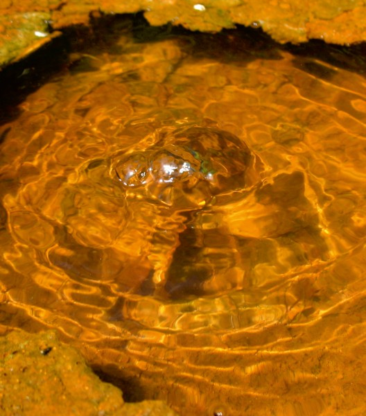 Na wyjątkowo atrakcyjną oprawę mofety wpływa bulgoczące rdzawożółte błoto, kolorystycznie kontrastujące z porastającą je intensywnie zieloną, niskopienną roślinnością. Wytrąca się ono z wód wypływających tu szczaw, zawierających dużą ilość związków żelaza i ma charakter koloidalnej, czerwonobrunatnej galaretowatej zawiesiny, cienkiej powłoki lub spienionego żelu. Osad ten zawiera także wiele minerałów wymytych ze skał podłoża, takich jak: kwarc, kaolinit, illit, montmorillonit, kalcyt, skalenie i chloryt. Ten rdzawy sedyment nazywany jest potocznie „rudawką” a jego nagromadzenie może doprowadzić do powstania ochry, cenionego od czasów paleolitu surowca mineralnego.