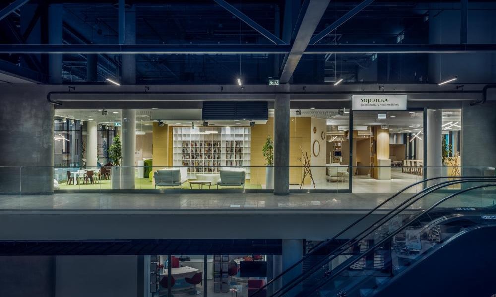 Sopoteka to filia Biblioteki Sopockiej. Ta nowo powstała i najnocześniejsza mediateka składa się z kilku stref, wśród których można znaleźć pracownię komputerową, stanowiska muzyczne, czytelnię z koszami plażowymi i miejscami cichej pracy oraz kącik dziecięcy z konsolami i kolorowymi klockami. Sercem tego miejsca jest wielofunkcyjna sala pełniąca rolę zarówno kina, teatru, jak i miejsca spotkań autorskich, wieczorków poetyckich, warsztatów muzycznych, wykładów podróżniczych czy historycznych. Tu spotykają się sprawy codzienne i wzniosłe. Naturalne, jasne drewno i biel. Kosze plażowe i poduchy. E-booki, audiobooki i tradycyjna książka. Technologia i ludzie. Kultura, edukacja i rozrywka. Nowoczesność, która nie przytłacza, a inspiruje – idealnie opisuje Sopotekę.