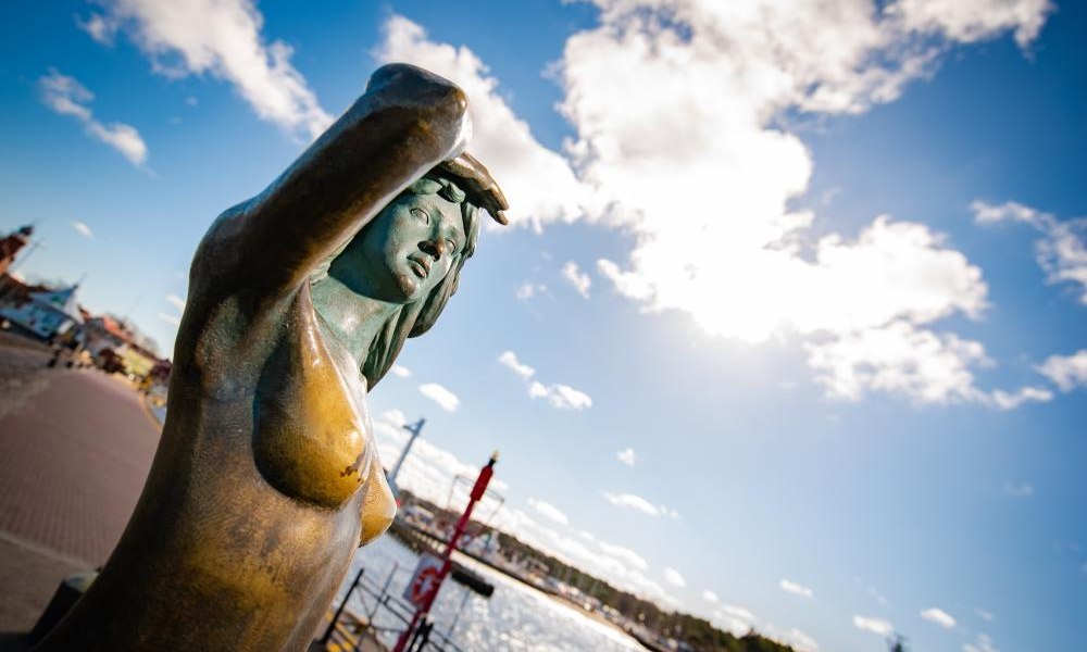 Dużą sympatią wczasowiczów cieszy się ustecka Syrenka – czyli pomnik wpatrzonej w morze nagiej dziewczyny-ryby. Ustawiono go przy wejściu na wschodni falochron. Pomysłodawcą Syrenki była Lokalna Organizacja Turystyczna, a wykonawcą – rzeźbiarz Michał Rosa. Mówi się, że dotknięcie jej biustu przynosi szczęście i zapewnia powrót do Ustki. Sądząc po wypolerowanej w tym miejscu figurze, turyści oddają się tej czynności z zapałem.