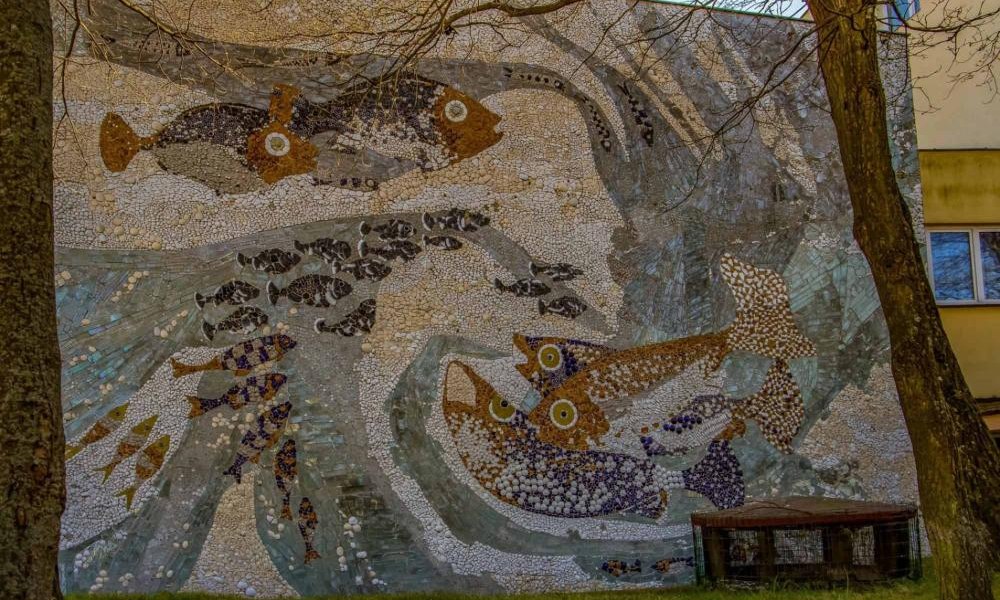 Sanatorium “Radość” w Ustce zdobi mozaika zaprojektowana przez Irenę Zahorską pod koniec lat 70. Ta ekspresyjna kompozycja, pełna morskich stworzeń wykonana została z elementów ceramicznych (m.in. fragmentów porcelitowych np. kubków, talerzy, dzbanków czy pokrywek).