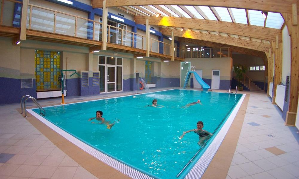 Basen znajdujący się na terenie obiektu jest dostosowany do potrzeb osób niepełnosprawnych oraz przeznaczony do rehabilitacji, ćwiczeń prowadzonych przez rehabilitanta i pływania.
