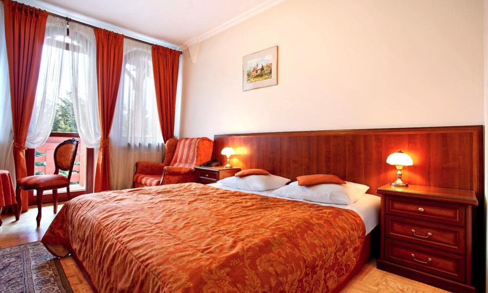 Pensjonat **** Klimek, położony w sąsiedztwie Hotelu Klimek **** SPA, to prawdziwie przytulne i zaciszne miejsce o kameralnej atmosferze. Komfortowe wnętrza, profesjonalna, miła obsługa i dbałość o bezpieczeństwo czynią Pensjonat idealnym również na pobyt z rodziną. Wolny czas wypełni moc dodatkowych atrakcji, a wśród nich: seanse w MINI-SPA (bio-sauna, natrysk wrażeń, terapia lodem) w Pensjonacie **** Klimek oraz pobyt w AQUAPARKU Hotelu Klimek **** SPA. Wypoczynkowi nada smaku Restauracja „STRAKIJA”. A wszystko to w przepięknym i urokliwym otoczeniu górskiej przyrody. Pensjonat **** Klimek oferuje pokoje o stonowanej kolorystyce pozwalające na chwile przyjemnego relaksu. Balkon lub taras znajdujący się w każdym z pokoi zapewnią piękne widoki. Dbając o dobre samopoczucie Gości, w łazienkach zastosowano podgrzewaną podłogę dostarczającą przyjemnego ciepła. Restauracja „STRAKIJA” oferuje kuchnię pełną zachwycających smaków i aromatów. Jest ona połączeniem najlepszych tradycji kuchni łemkowskiej i regionalnej. Nasza restauracja tworzy klimat w którym, w rodzinnej atmosferze można spędzić niezapomniane chwile. Pensjonat **** Klimek w połączeniu z Hotelem Klimek **** SPA oferuje wiele form przyjemnego i aktywnego wypoczynku dla dzieci i dorosłych, a wśród nich aquapark z wieloma wodnymi atrakcjami, kompleks saun. Miłośników rozgrywek towarzyskich ucieszy mini kręgielnia, bilard, tenis ziemny, czy też siatkówka plażowa. Okolice Doliny Popradu stwarzają znakomite warunki dla turystyki rowerowej, pieszej oraz nordic walking.