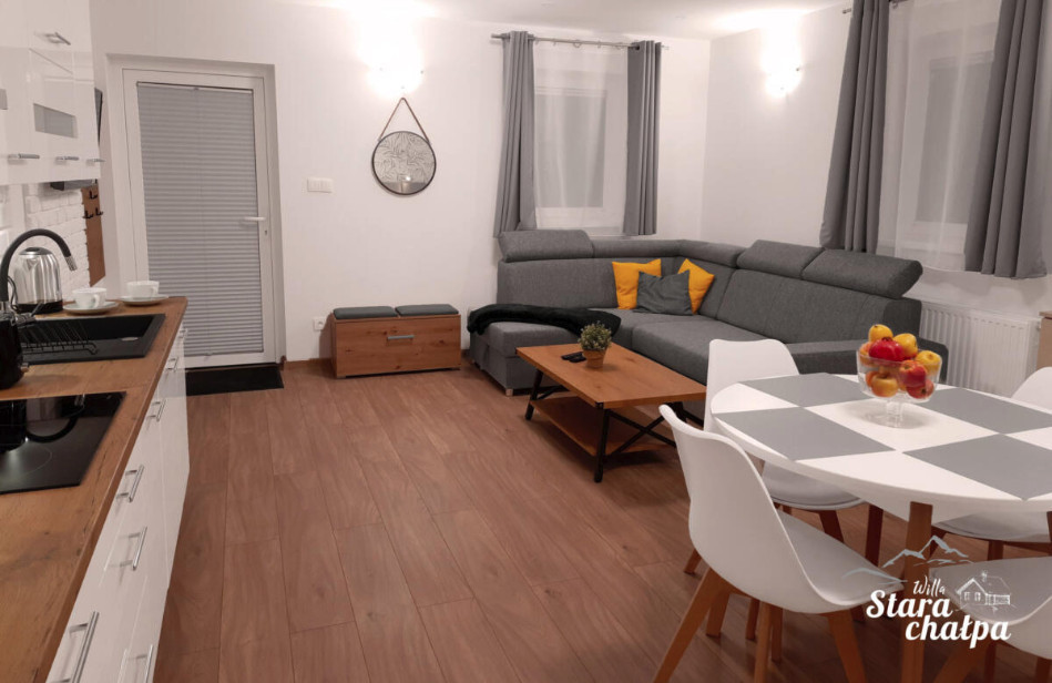 Apartament usytuowany jest nad potokiem przy wodospadzie, którego szum płynącej górskiej wody działa kojąco i wyciszająco. O poranku z mini tarasu przed wejściem do apartamentu spoglądając na polanę można zobaczyć sarny i jelenie oraz usłyszeć dzwoneczki pasących się owiec. Przy apartamencie znajduje się miejsce parkingowe, które jest monitorowane przez 24h na dobę. Goście korzystają z ogródka zlokalizowanego przy apartamencie. Do dyspozycji gości meble ogrodowe, grill – miejsce bezpieczne ogrodzone od drogi. Apartament posiada bezprzewodowy Internet Wi-Fi. Wynajmujący mają możliwość pozostawienia sprzętu narciarskiego, bądź roweru w miejscu do tego przeznaczonym. Do dyspozycji gości odpłatnie oddajemy siłownię – mini salę fitness. Udostępniamy również rowery.